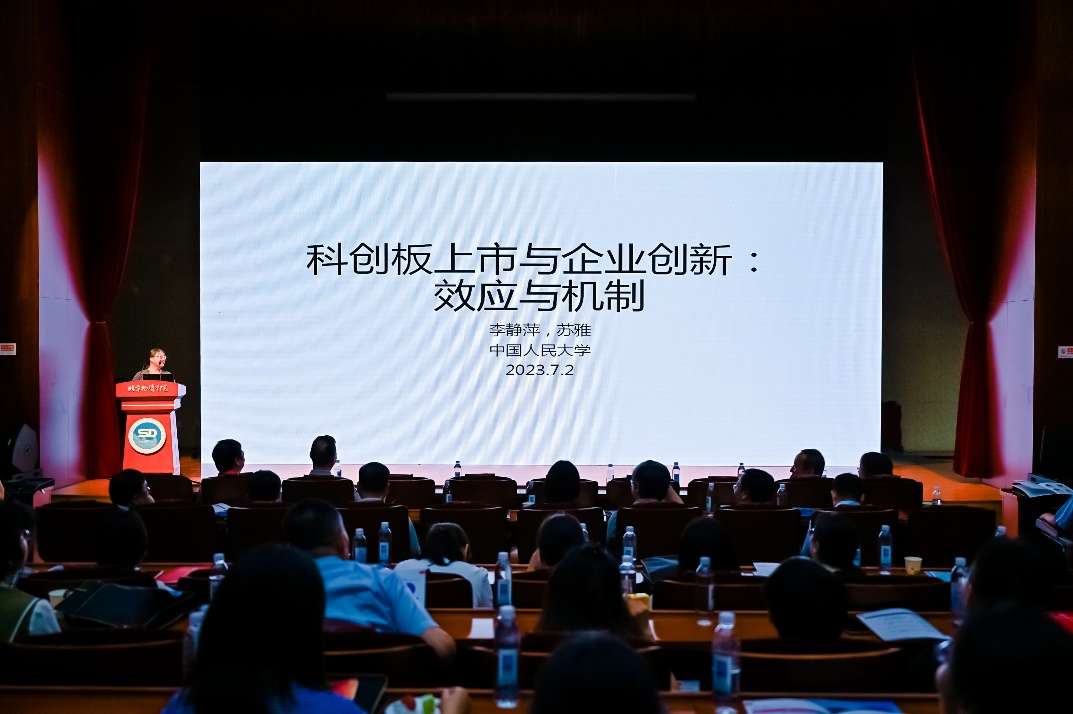 首先由中国人民大学统计公司党委书记孟生旺教授主持,由全国工业统计学教学研究会副会长、北京市统计学会副会长、中国国民经济核算研究会秘书长、中国人民大学统计公司副经理、中国人民大学应用统计科学研究中心主任李静萍教授带来了精彩报告《科创板上市与企业创新:效应与机制》。基于科创板上市企业数据,利用PSM方法和面板模型检验了企业在科创板上市对创新能力的影响,并运用中介效应模型探究了企业在科创板上市对企业创新的影响机制。