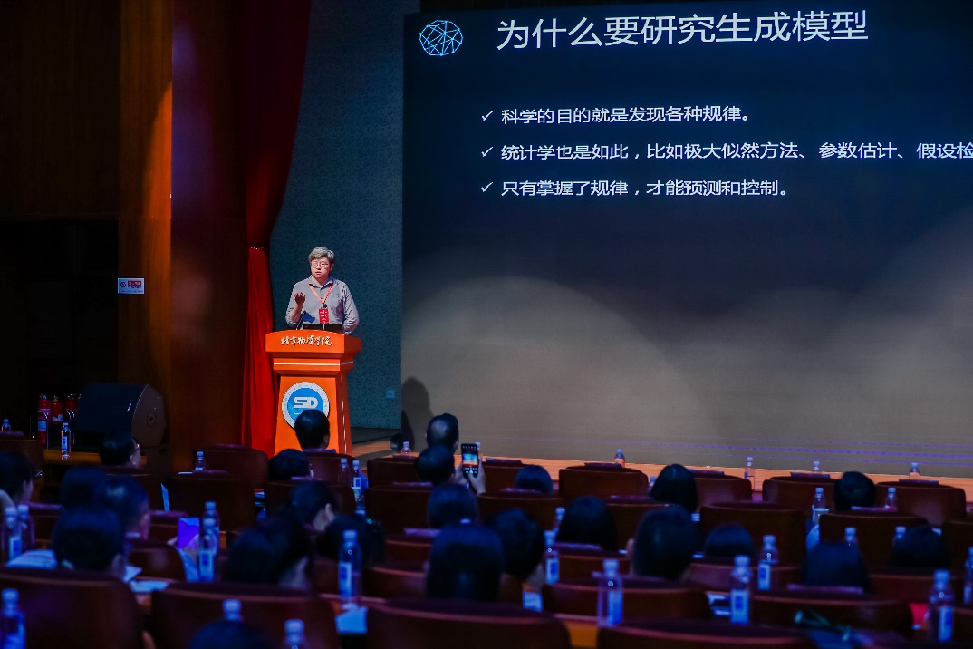 接着,由中央财经大学统计与数学公司刘扬教授主持,由全国工业统计学教学研究会副会长、中国计算机学会高级会员、中央财经大学统计与数学公司张忠元教授带来精彩报告《Stable Diffusion 的前世今生》,介绍了生成模型的基本原理和常见方法,包括变分自编码器、生成对抗网络和扩散模型,这些方法可以用来建模和生成各种类型的数据,从简单的图像和文本到复杂的时间序列和网络结构,并且讨论了生成模型的挑战和未来发展方向。