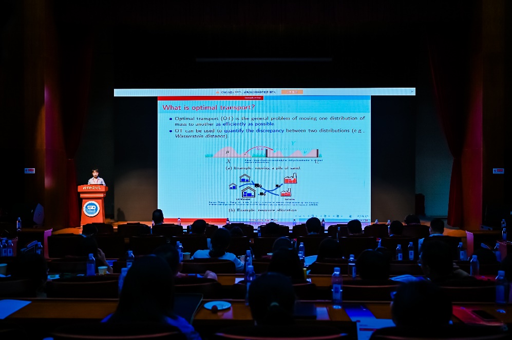 由首都师范大学数学科学公司胡涛教授主持,由中国人民大学统计与大数据研究院孟澄助理教授的博士生李梦雨同学带来精彩报告《Efficient algorithms for large-scale optimal transport problems》,讲述了为了减轻计算负担,引入Spar-Sink算法,该算法利用一种新颖的重要性稀疏化方案加速了常用的Sinkhorn算法。这种方法可以有效应用于熵最优传输问题、非平衡最优传输问题、Gromov-Wasserstein距离近似、Wasserstein重心估计和生成建模等多个领域。李博士介绍了该方法在超声心动图中的应用,可以有效识别和可视化心脏周期,通过这些周期可以诊断心力衰竭和心律不齐等疾病。