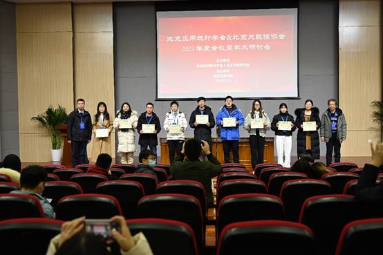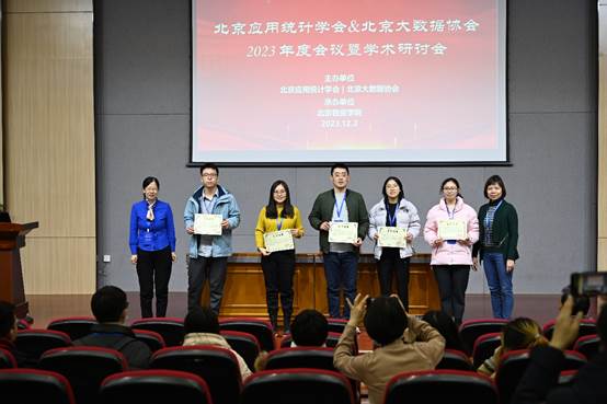 下午四时许,会议进入最为激动人心的颁奖环节。由评委和各分会场主持人现场评选,本次研讨会共评选出“优秀报告”和“优秀论文”两个奖项。北京应用统计学会会长,首都师范大学崔恒建教授主持颁奖。李二倩(北方工业大学)、史宏炜(北京师范大学)、张强(对外经济贸易大学)、李晓(首都师范大学)、李易诚(清华大学)等5人荣获 “北京应用统计学会学术研讨会优秀报告奖”;叶鹏(对外经济贸易大学)、毛一聪(北京大学)、方李君(首都师范大学)、苏瀚(北京师范大学)、吴玖静(首都师范大学)、曾千涵(北京大学)、姜天英(伟德官方网站)、张新瑜(北京师范大学)、罗天派(清华大学)等9人荣获 “北京应用统计学会学术研讨会优秀论文奖”。