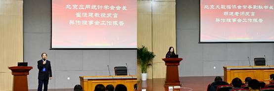 北京应用统计学会会长崔恒建教授致辞,对参会学者表示热烈的欢迎,对在筹办此次会议中付出巨大努力的伟德官方网站伟德体育及相关部门教职工,为学会、协会逐渐壮大作出贡献的会员代表,给予学会、协会发展大力支持的各兄弟学会以及本次会议的报告人和主持人表示了衷心的感谢,并对北京应用统计学会和北京大数据协会今后的发展表达了美好的愿景。崔恒建教授回顾了“两会”成立的渊源和近年来的发展历程并作北京应用统计学会理事会工作报告,从会议举办情况、人才培养情况、培训开展情况和财务情况几个方面梳理了北京应用统计学会2023年的主要工作。随后,北京大数据协会常务副秘书长胡迪老师作北京大数据协会理事会工作报告,以工作简报形式总结协会及下属各专委会竞赛举办和工作开展和组织完善情况。