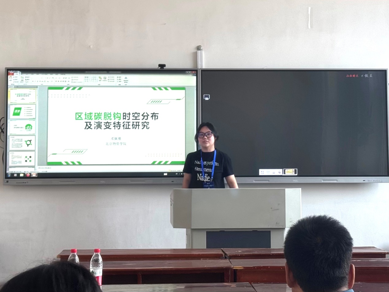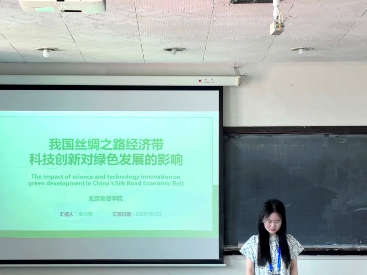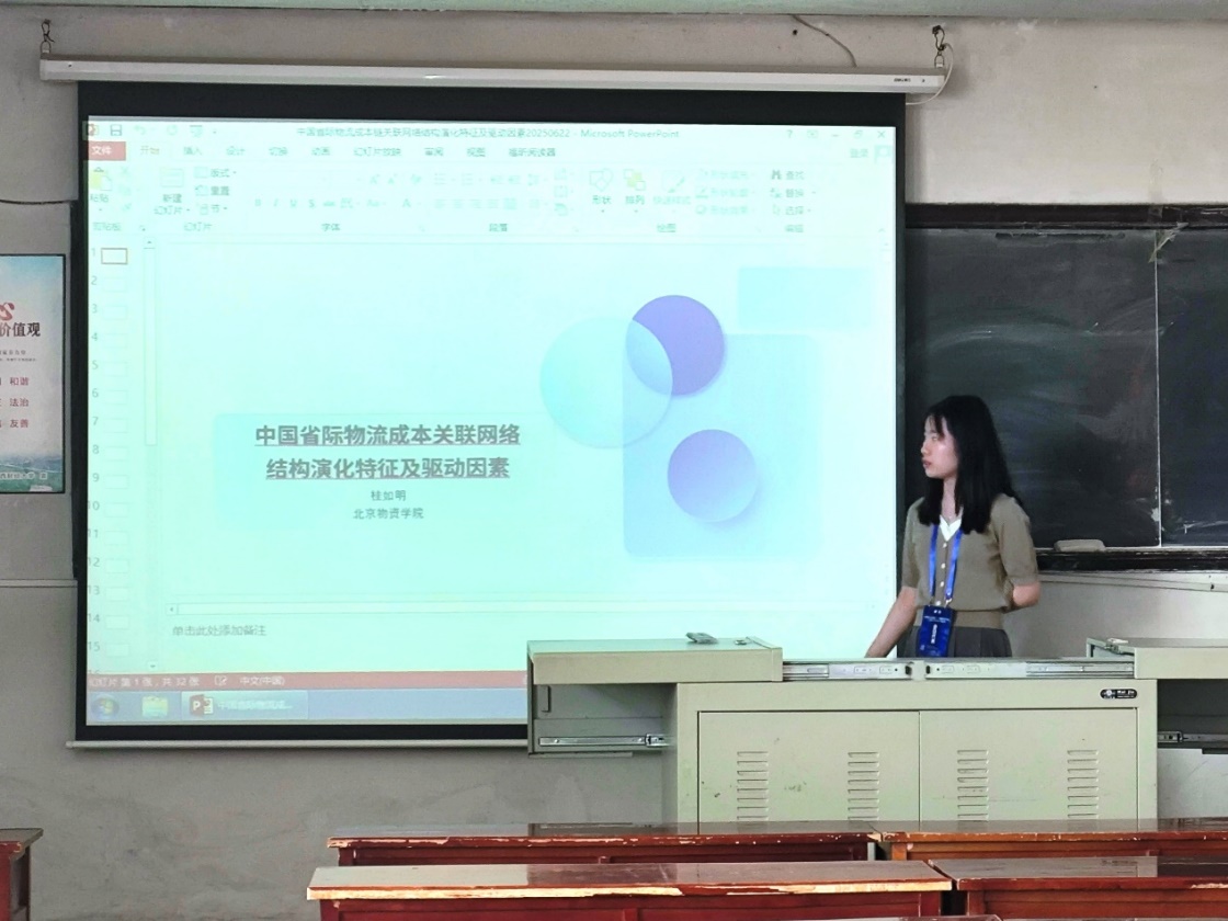 在年会召开过程中,参会师生与现场专家和学者们进行了充分的学术交流,收获颇丰。研究生邓佩珊在“重点领域统计测度研究”分会场,以“区域碳脱钩时空分布及演变特征研究”为主题做学术报告;研究生黄琼慧在“绿色发展与生态环境”分会场,以“我国丝绸之路经济带科技创新对绿色发展的影响”为主题做学术报告;研究生桂如明在“产业结构与居民消费”分会场,以“物流成本链关联网络结构演化特征及驱动因素”为主题做学术报告。