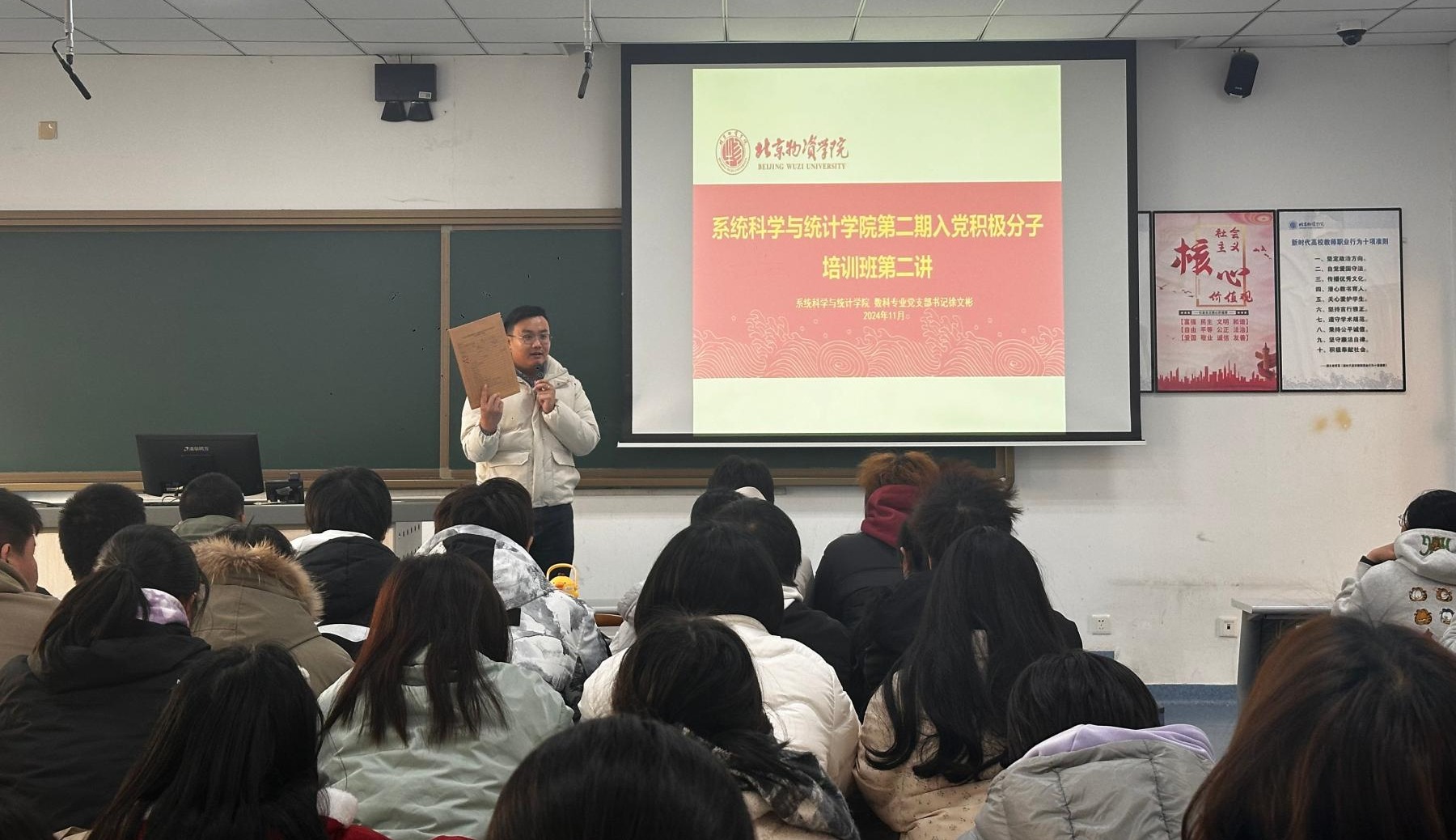 为切实加强入党积极分子的培养和教育,严把党员发展质量关,教育引导员工树立正确的入党动机。2024年12月6日,伟德体育第二期入党积极分子培训班第二讲于二教201教室成功开展。数据科学与大数据技术专业本科生党支部书记徐文彬老师担任主讲嘉宾,为学员们带来了一场内容详实且极具指导意义的课程。