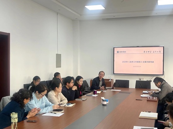 会上,续杨书记带领全体教职工集中学习两会精神。报告中关于教育强国、就业创业等方面的论述,引起老师们的强烈共鸣。