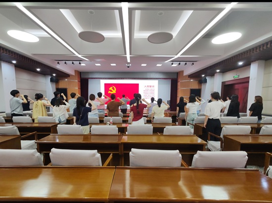 最后,全体党员整齐肃立,面向鲜艳的党旗,庄严地举起右拳,齐声重温入党誓词。声声誓词是党员对初心使命的坚守与承诺,更是坚定为共产主义事业奋斗终身的信念。