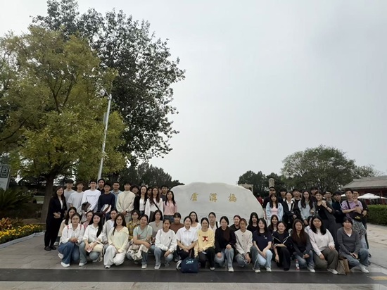 随后,大家前往卢沟桥,实地探访这座承载着厚重历史记忆的“七七事变”发生地。漫步在全长266.5米的卢沟桥上,石狮形态各异、栩栩如生,桥身斑驳的痕迹仿佛仍在诉说着1937年7月7日那个惊心动魄的夜晚。