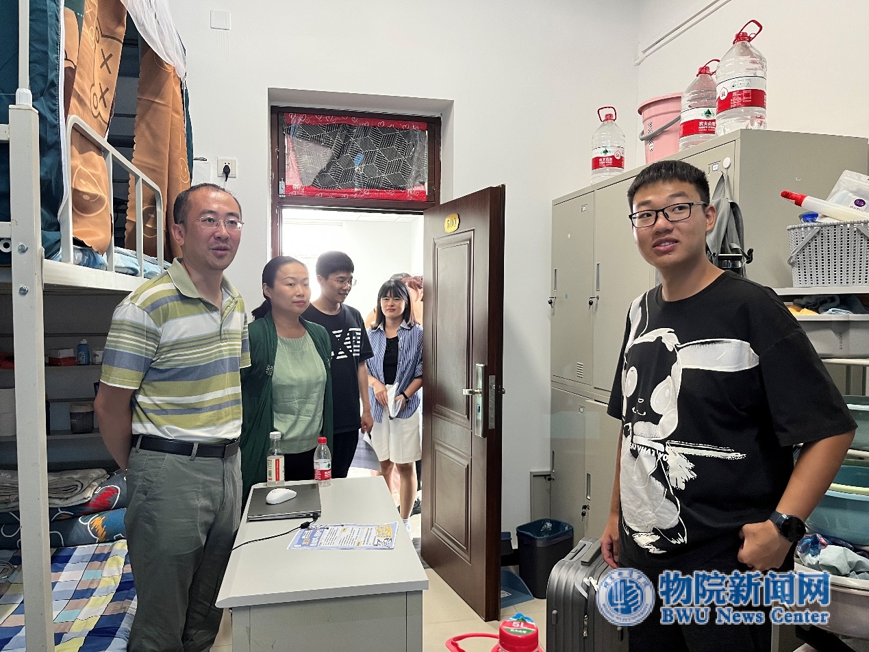 为加强与新生之间的沟通交流,更好的了解新生的住宿情况,帮助新生更快的适应老员工活,切实解决新生初入校园面临的各种困难和问题。2023年8月26日下午,统计与数据科学公司党总支书记续杨、经理郭茜与辅导员、新生班主任以及新生班主任助理一同走访了2023级本科生和研究生宿舍。