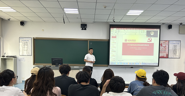 党课伊始,党支部书记徐文彬强调全体毕业生党员要坚持不懈用习近平新时代中国特色社会主义思想武装头脑,筑牢思想根基、练就过硬本领、锤炼品德修为、保持清正廉洁,强化党员意识,以身作则,发挥党员先锋模范作用,做忠诚干净担当的时代新人。随后,徐老师向毕业生党员讲述了党支部近期的会议及活动安排,如党纪学习教育党支部书记讲党课、发展会、红色“1+1”活动、转正会等,提醒毕业生党员合理规划时间。