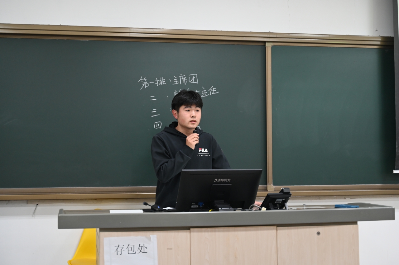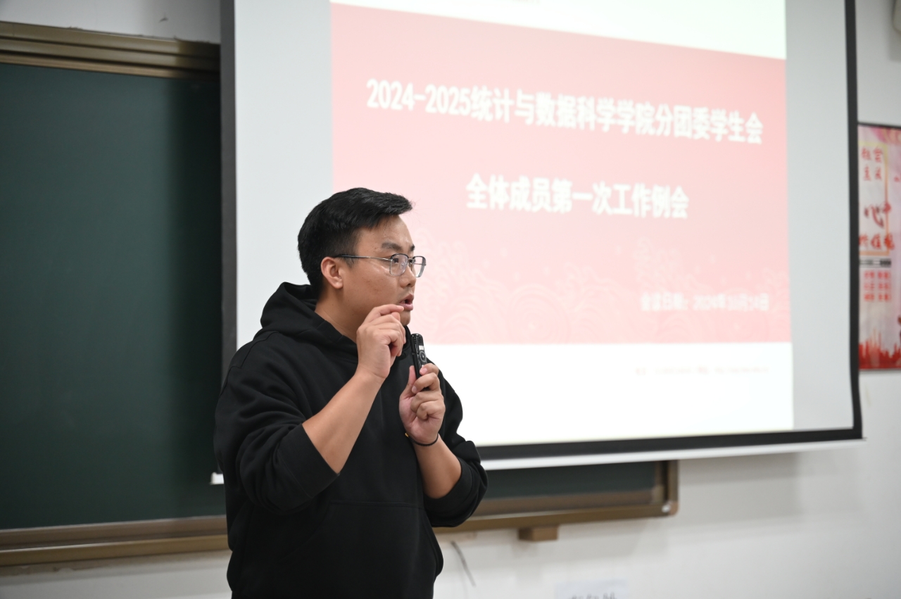 随后,分团委书记徐文彬老师进行讲话,徐老师首先对全体成员的加入表示了热烈欢迎,并向大家介绍了分团委、员工会的副书记、主席团成员以及各部门部长、主任,简要陈述了院分团委、员工会的组织架构和职责分工,来帮助新成员们更好地了解分团委、员工会的工作内容和目标。徐老师希望各部门紧密配合,共同推动分团委、员工会工作的顺利开展,并表达了对未来分团委、员工会工作的美好愿景。