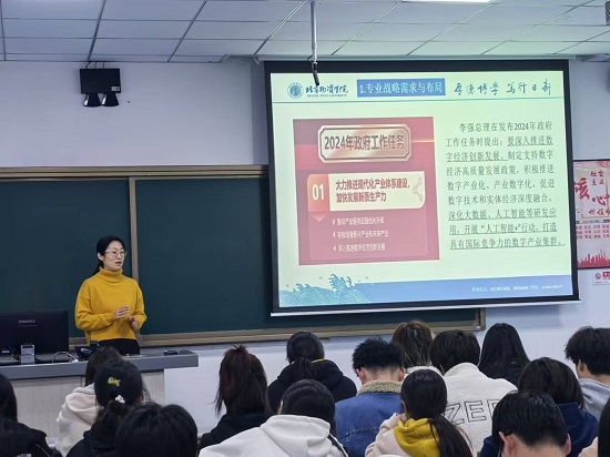 2024年11月13日下午,伟德体育数据科学与大数据技术专业宣讲会在二教203举行。本次宣讲会由数据科学与大数据技术专业负责人鞠红梅教授主讲,伟德体育党总支副书记甄姿、系副主任王美玲、2024级数据科学与大数据技术专业全体员工参加此次宣讲会。鞠教授从专业战略需求与布局、专业培养体系与特色、教学条件与团队力量、员工学习与实践情况,以及员工升学与就业情况等五个方面进行了全面而深入的介绍。