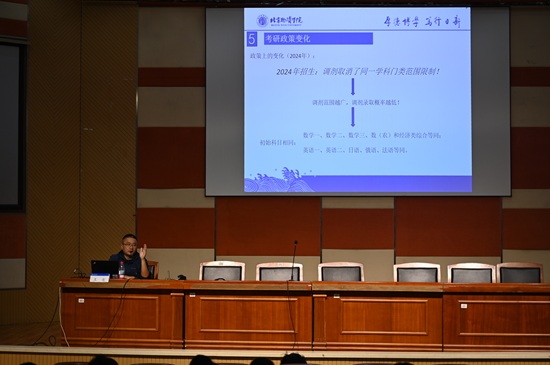 谈到考研科目时,王有老师立足全局,提醒同学们要依据自身基础课的掌握程度与学习能力,科学合理地制定备考策略。专业选择部分,王有老师列举了本校、外校、985、211、双一流等院校类型,引导同学们基于自身兴趣与职业规划,做出理性且契合自身发展的选择。在考研政策变化的讲解中,王有老师引入宏观视角,让同学们了解考研形势。最后,王有老师聚焦本校招生情况,通过详实的数据,直观呈现本校考生一志愿报考本校的录取情况,为同学们提供了重要的报考参考。