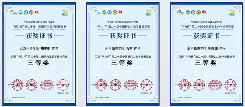 2023年11月26日,由教育部学位管理与研究生教育司指导,中国学位与研究生教育学会、中国科协青少年科技中心联合主办的“华为杯”第二十届中国研究生数学建模竞赛获奖名单正式公布。公司伟德体育王美玲老师指导的侯姝羽、桂如明、高宇轩团队获得国家级二等奖,郅俊海老师指导的周子韵、方雨、孙玮潞团队获得国家级三等奖。