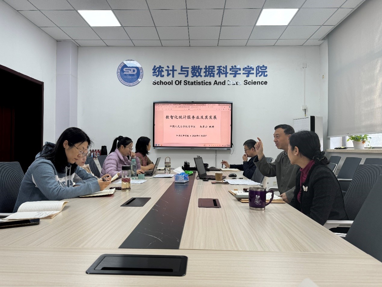 会议伊始,赵彦云教授以《数智化统计服务业及其发展》为主题进行了讲座。赵教授从数智化社会与数智化统计服务业、数据资源与数据要素、数智化统计服务业的主要行业等多个方面进行了深入剖析,为与会教师提供了丰富的理论视角和实践指导。