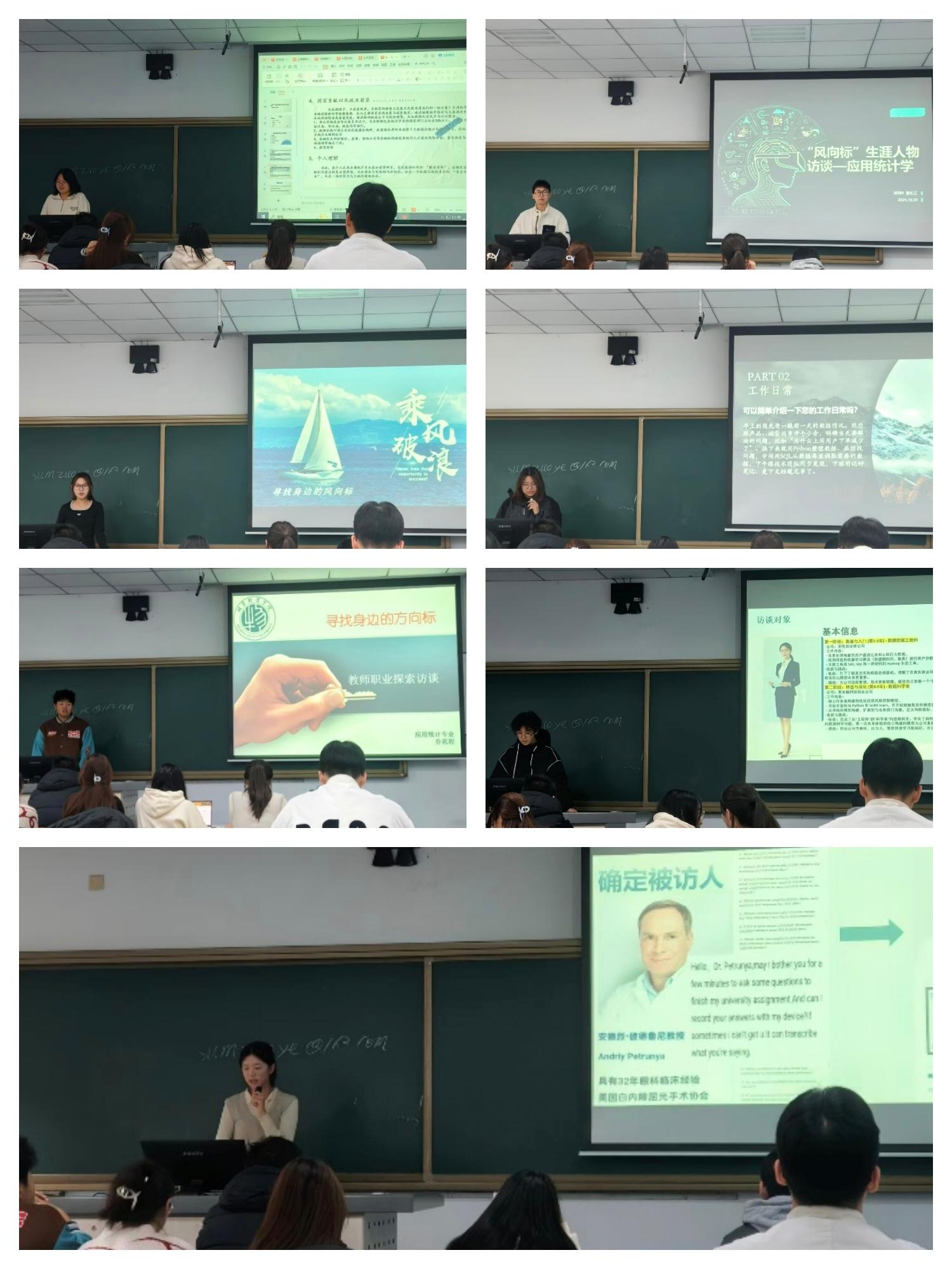 金融与医疗领域的分享同样精彩。聚焦风控专家的队伍,用真实案例展现统计学与数据科学在信用评估、风险预警中的核心作用,“每一个数据波动背后,都是对‘稳健’二字的坚守”;而对话医疗科研工作者的团队,则挖掘出统计方法在临床试验设计、疾病数据分析中的关键价值,让大家看到“冰冷数据也能温暖生命”,以及对于教师这一职业的访谈,教育不仅是知识传授,更是用耐心与责任陪伴员工探索世界,这份职业平凡却伟大。大家不仅透过数据分析师、教师等职业,看到了专业落地的鲜活模样,更对自己的专业有了深刻认知,这份 “选择即热爱” 的信念也愈发强烈。