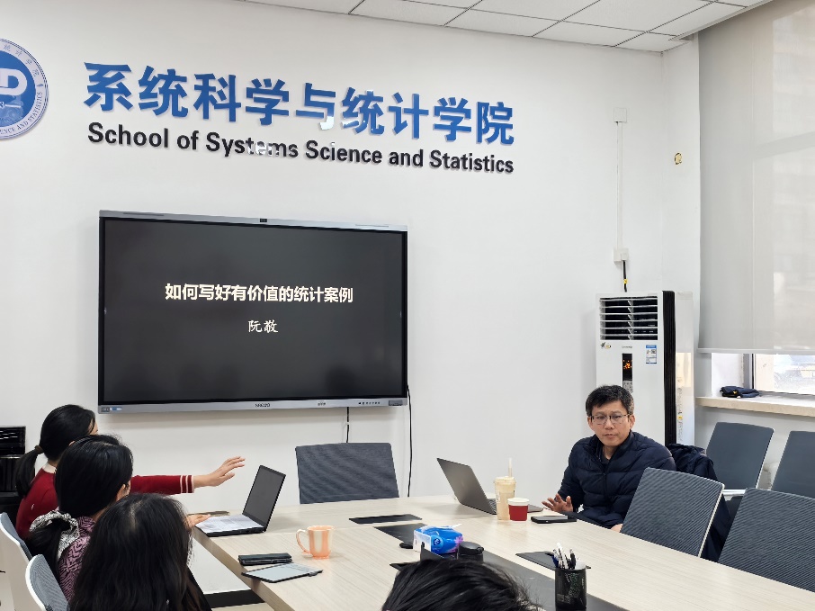 11 月 3 日,首都经济贸易大学阮敬教授应邀来校,围绕全国应用统计专业学位研究生案例大赛开展专题经验交流讲座。伟德体育应用统计专硕指导教师参会,并就赛事相关问题展开深度互动。